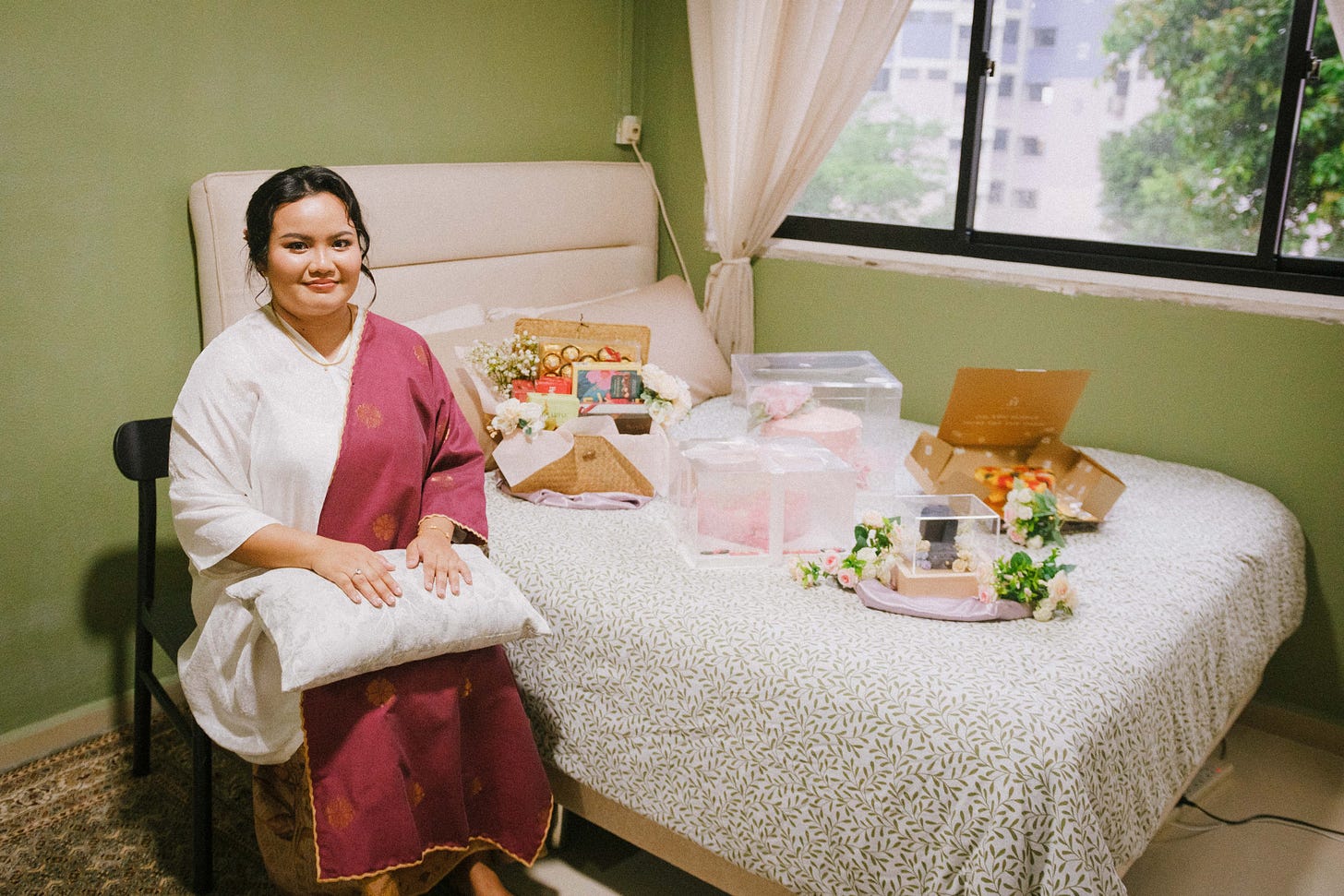 Anyway, it’s customary during the engagement ceremony for the bride and groom-to-be to exchange gift trays, or dulang. These gifts usually take on the form of clothes, prayer mats, makeup, or other nice things - I’ve attended engagement ceremonies where the gifts included a nice pair of jeans, or sneakers. My mom tells me my dad gave her kain lepas - unsewn cloth, among other things. Apparently my grandfather was never one for making the engagement process a big thing.