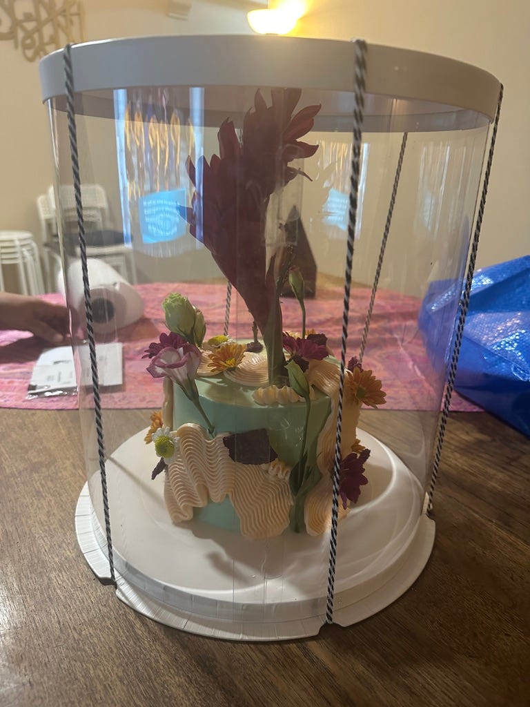 So when our parents suggested that the dulangs be entirely comprised of food, we had to really go back to the drawing board and think. You can’t put a pot of rendang on a dulang and give it as an engagement gift. I mean you could, but that’s a bit weird. Of course, we planned a few things to order and give to each other, like a custom cake from Dapiku Sweets in the colour of a smiski (haha) and topped by an amazing bloomed ginger flower.