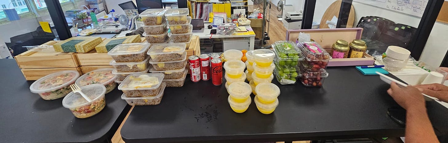 Last December, we had a little volunteer gathering at work to celebrate the end of the year and Christmas. We’d always catered food for such occasions, but for the first time we decided to organise a potluck - which went quite well! It was definitely tough administratively, because on top of chasing people for their attendance, you’ve got to chase them to check what they’re bringing - because when you leave something as critical as food to the masses, you have to try to exert as much control as you can. And that’s as tough as herding kittens but you have to. See, catering is easy because you can just pay money to make sure everyone has enough to eat - the vegetarians, the muslims, those with allergies, the picky eaters… There’s so much communication and cajoling to make sure all these boxes are ticked in a potluck.